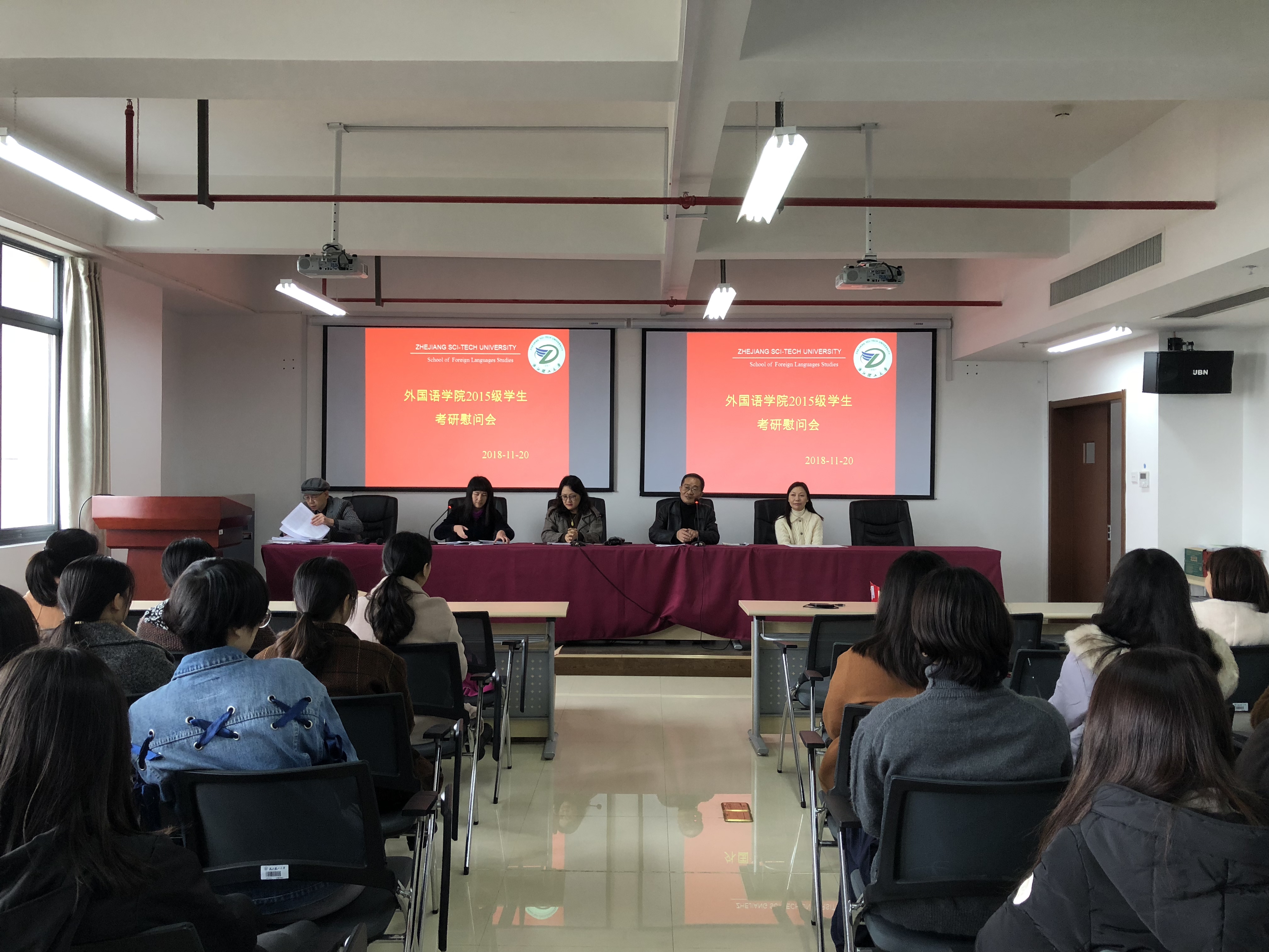 为鼓舞考研士气,坚定考研信心,11月20日下午,足球篮球官方直播平台在25号楼718报告厅召开了2019届学生考研冲刺动员会暨慰问会。学院党委书记王晓军、院长何庆机、党委副书记夏青、日语系主任徐青、英语系副主任杨晓波以及2019届考研学生60余人参加了此次活动。会议由党委副书记夏青主持。