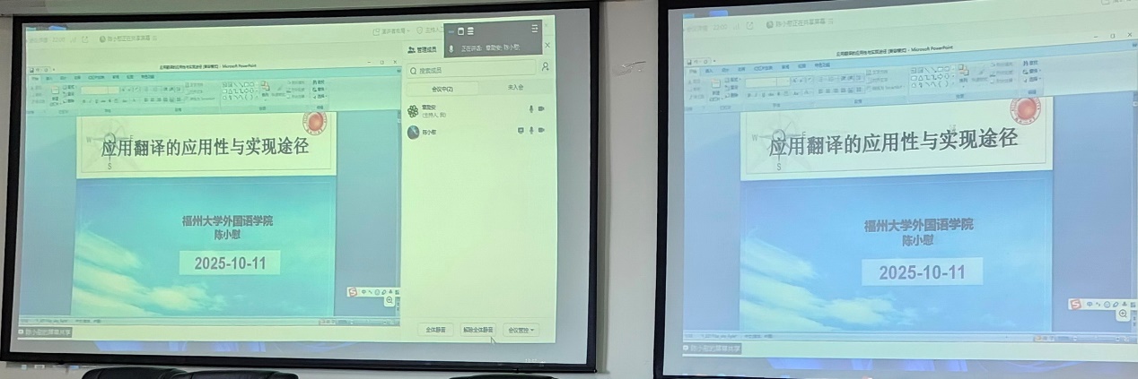 最后,陈小慰教授强调,应通过加强应用翻译的应用性研究,更好地发挥翻译在社会、经济和文化发展中的作用,提升应用翻译话语的国际传播力,更好地服务国家。她的见解与学识增进了大家对应用翻译的理解,激发了大家对应用翻译语言研究的热情和兴趣。